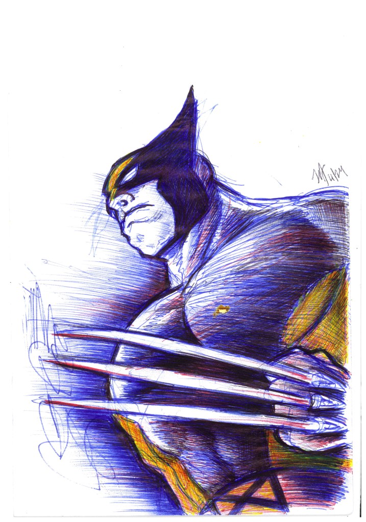 Sometimes I mindlessly scribble because it helps me think. Ballpoint pen and mustard stain on copy paper.Lots of split ends. X-23. Ballpoint pen, sharpie and white out on copy paper. 8.5″ x 11″A bugs life. Ballpoint pen on copy paper 8.5″ x 11″ #zorak