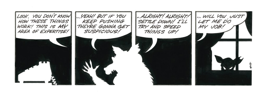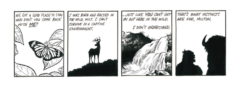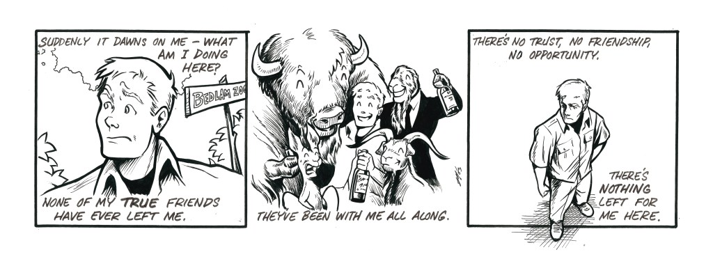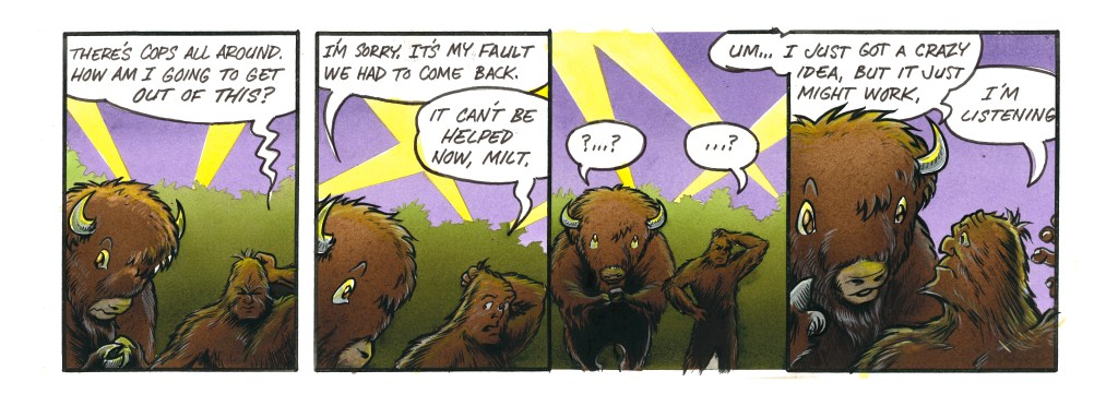 There was still no plan. I made it to 100 daily strips of this particular series and needed to keep working. This album will contain those strips beyond 100 in as chronological order as possible. I seem to be missing a few and/or did not date or number them.