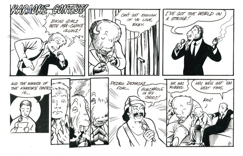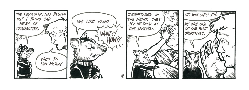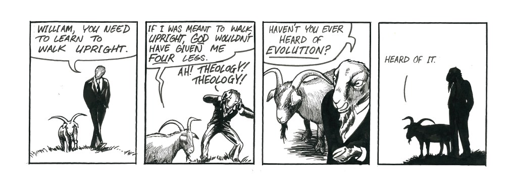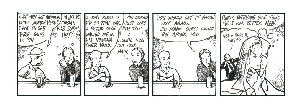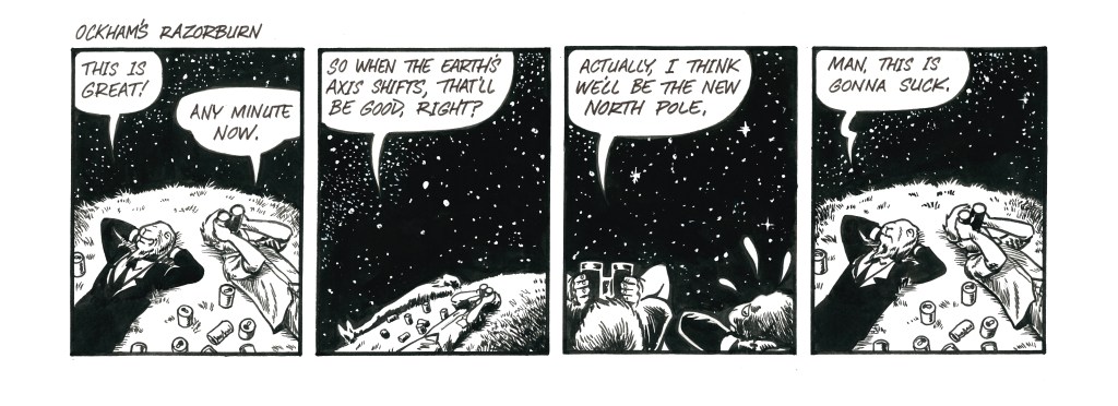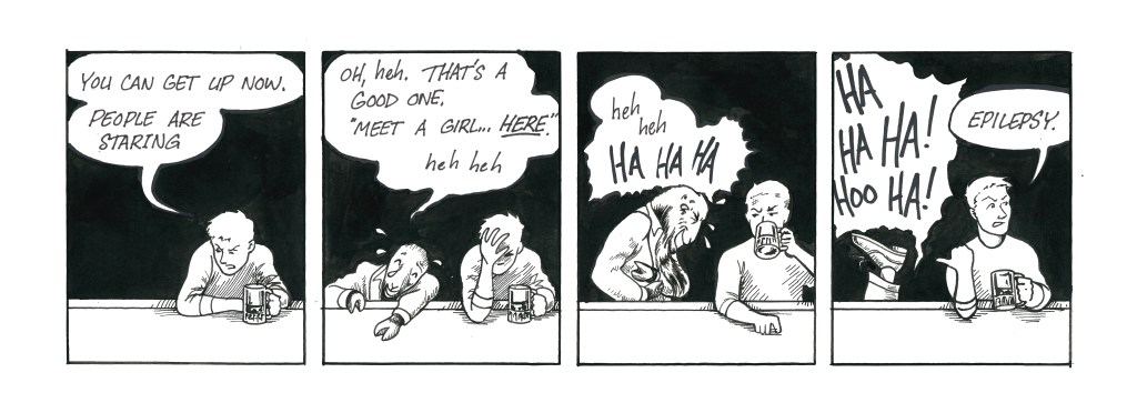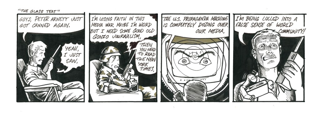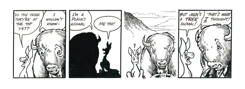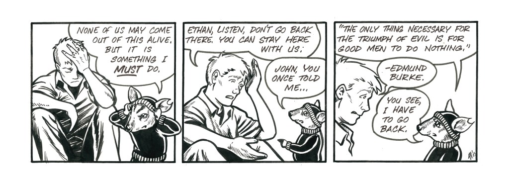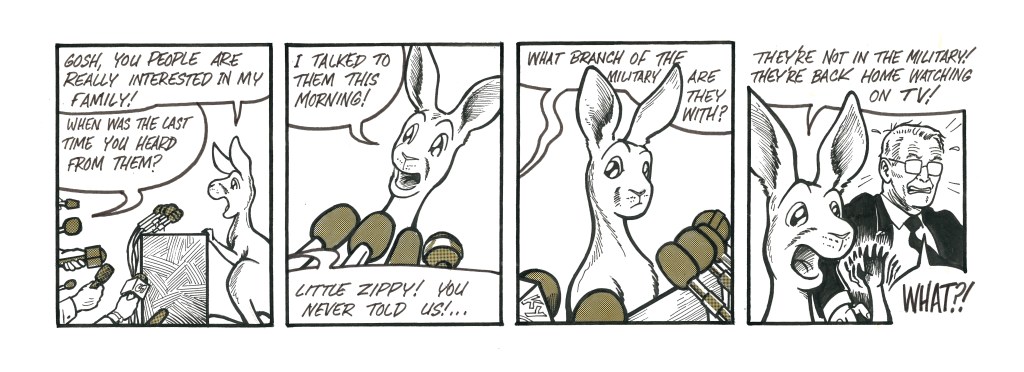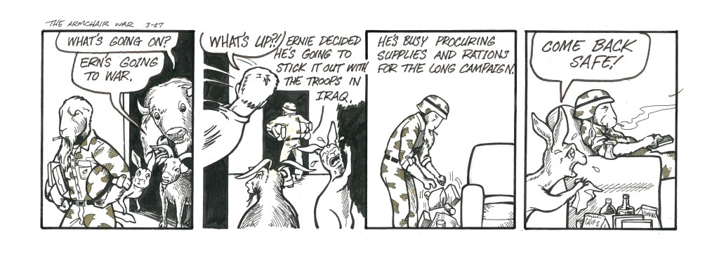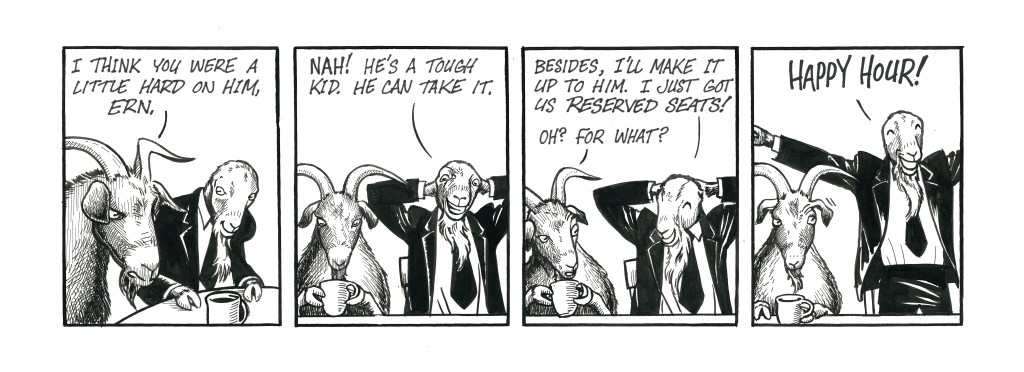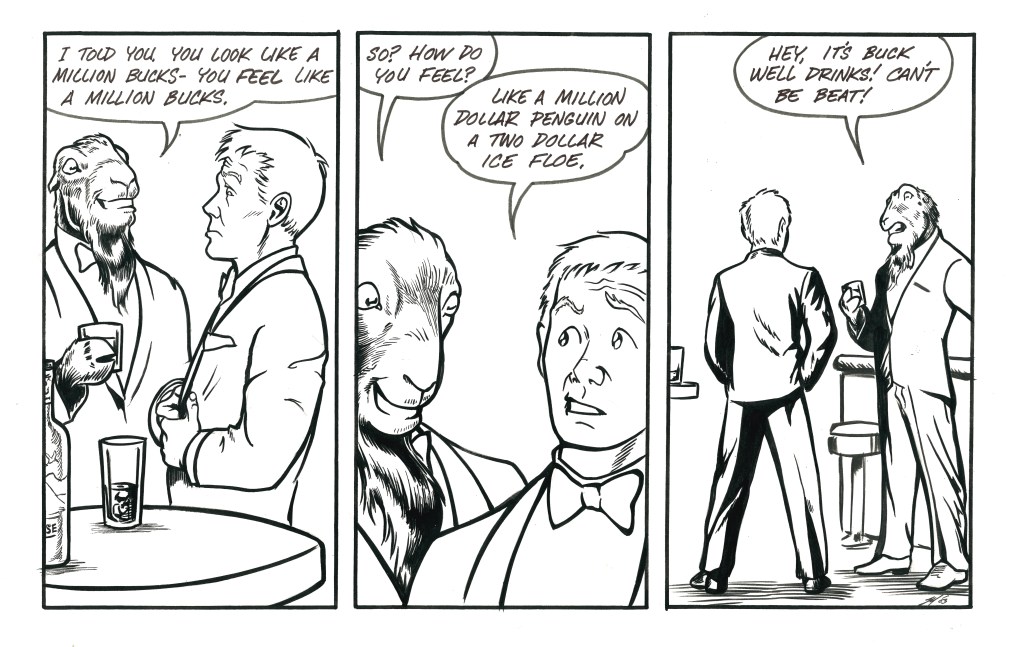 Long time ago in a galaxy right down the street, I was experimenting with the daily comic strip format and developing a strip called BEDLAM. It was a practice in speed (because daily strips are done, well, daily) so the art was not always the best. The goal was to make it as good as possible in the time allotted. I’ll post many of those in this album mainly for posterity (I’m cringing already). But there is a few gems among them. This strip was nowhere near my best work. © John Heatter.