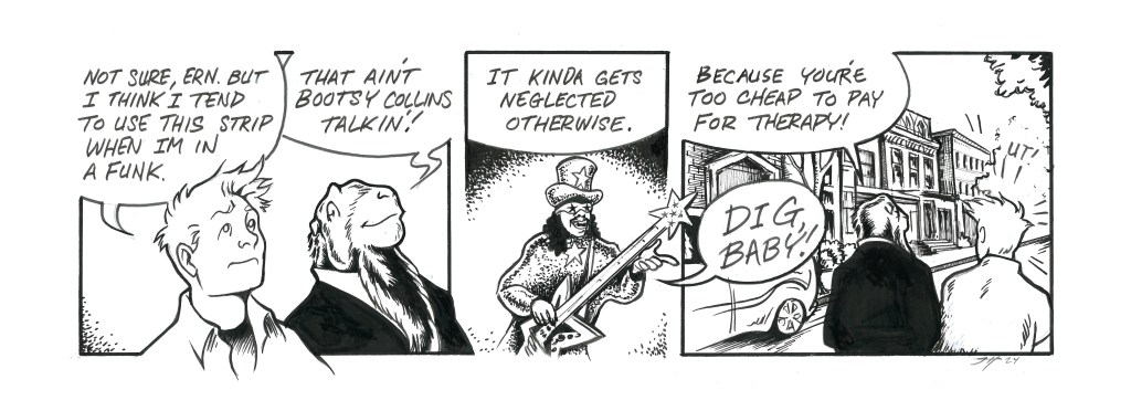 Besides that ever-present dread of never getting to all the projects (the reason I feel The Snows of Kilimanjaro is one of the greatest horror stories of all time), to which there is only one solution: WORK. And work consistently. Besides all that, I was trying out a new pen to letter this strip. A Micron. I used them a long time ago and didn’t like them. I still don’t. Stay tuned. I have a few others to try.Ain’t Art Life Grand?