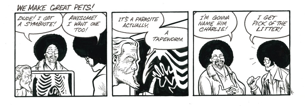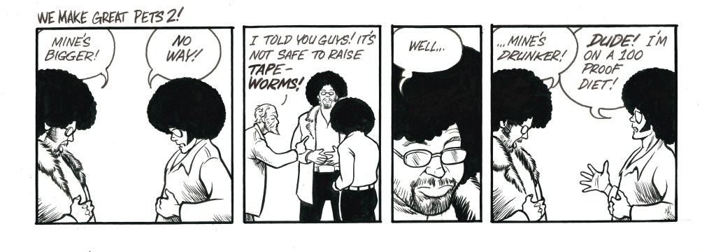 Kung Fu Disco Voodoo is it’s own story and takes place during our 70’s. Son of KFDV is modern day. I hope to make that all clear someday. They are two different strips and have their own timeline. © John Heatter.